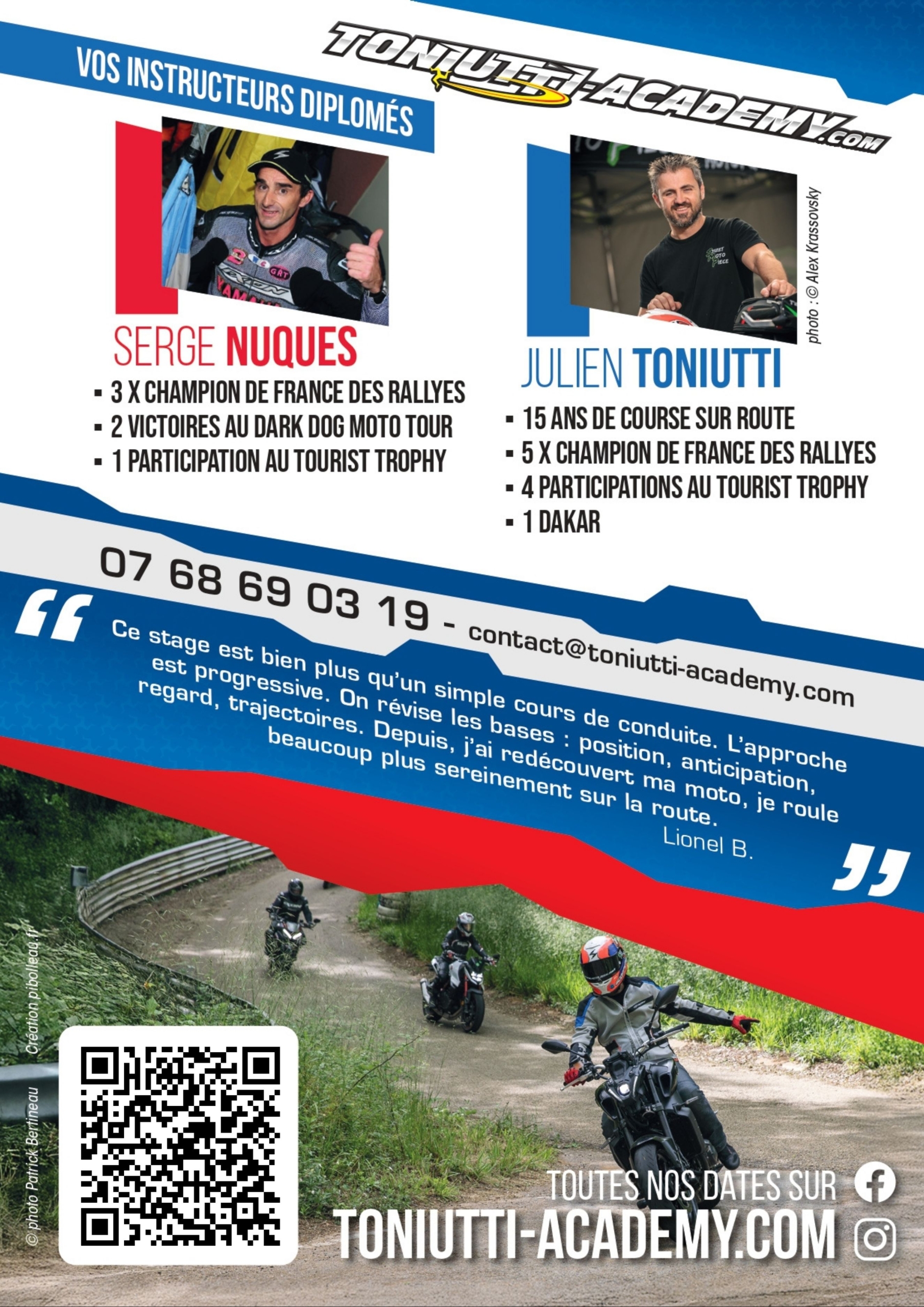 Un stage exclusif organisé par Julien Toniutti, 5 fois Champion de France des Rallyes Moto, accompagné de Serge Nuques, surnommé le « Chevalier de Groland ».